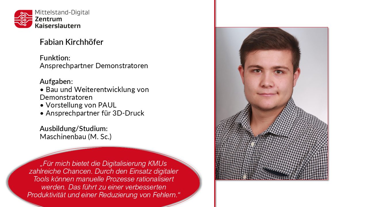 Dabei begleitet das Mittelstand-Digital Zentrum Kaiserslautern Firmen aus Rheinland-Pfalz und darüber hinaus. Wir stehen Ihnen zur Seite mit einem breiten, aktuellen Wissensschatz sowie mit wertvollen praktischen Erfahrungen auf dem Feld Industrie 4.0. Unser Fokus liegt insbesondere darauf, die Erkenntnisse aus langjähriger Forschungs- und Realisierungsarbeit gemeinsam für kleine und mittlere Unternehmen nutzbar zu machen.